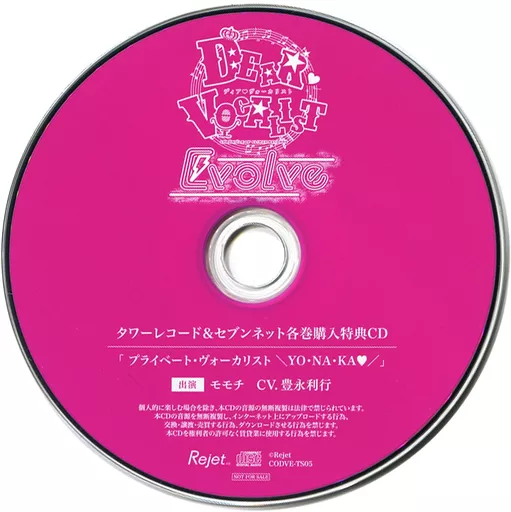 Tower Record Seven Net special drama CDs of "Dear Vocalist Evolve Entry No. 5 モモチ (CV. Toshiyuki Toyonaga)" will be a single item.