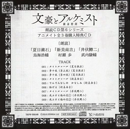Animate simultaneous Purchase benefits CDs of "Bungou to Alchemist Recitation CDs 16th ~ 18th" will be sold separately.