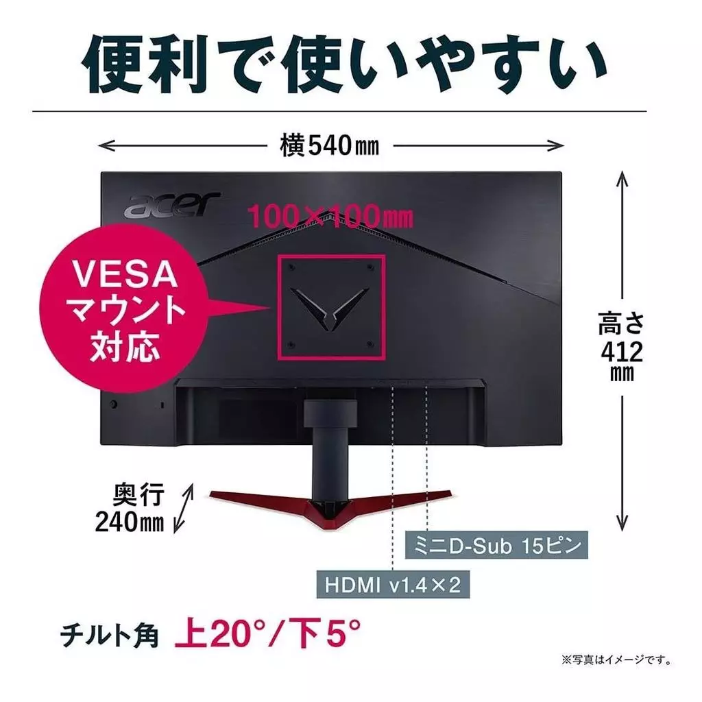 Interface : Mini D-Sub 15-pin, HDMI 1.4x2 (HDCP2.2 supported), 3.5 mm stereo mini-jack, headphone port