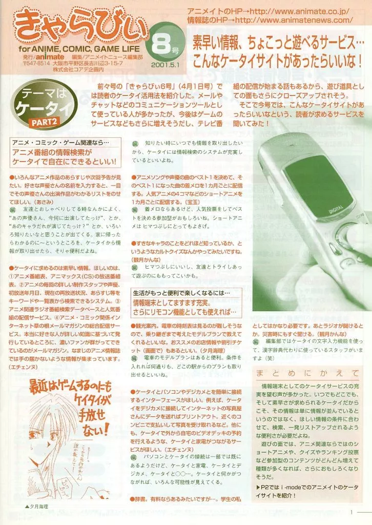Japanese title: アニメムック アニメ・漫画系書籍 きゃらびぃ 2001.5.1 新創刊8号