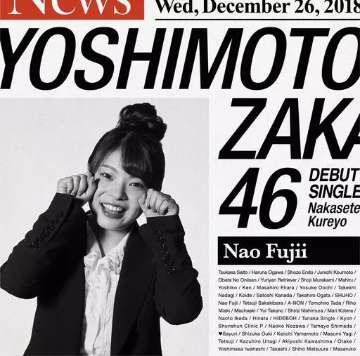 The debut single of Yoshi Honzaka 46, the 3rd group of "Slope Series" following Nogizaka46 and Keyakizaka46, produced by Yasushi Akimoto. The center of the title song is Tsukasa Saito (Trendy Angel) and 暖奈 Ogawa (Spike). The members are selected from the entertainers belonging to Yoshimoto Kogyo.