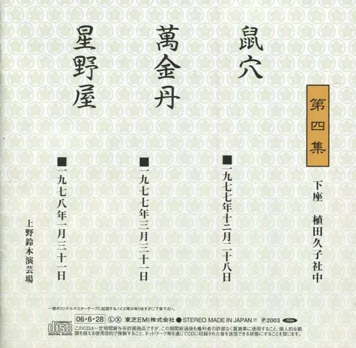 The "5 th" Enraku solo performance series, which gained national popularity as the host of Nittere's long-running program 『 Shoten 』. It was performed in Ueno Suzumoto Engeijo Theater from 1977 to 1980, and it attracted listeners with light storytelling unique to powerful people.