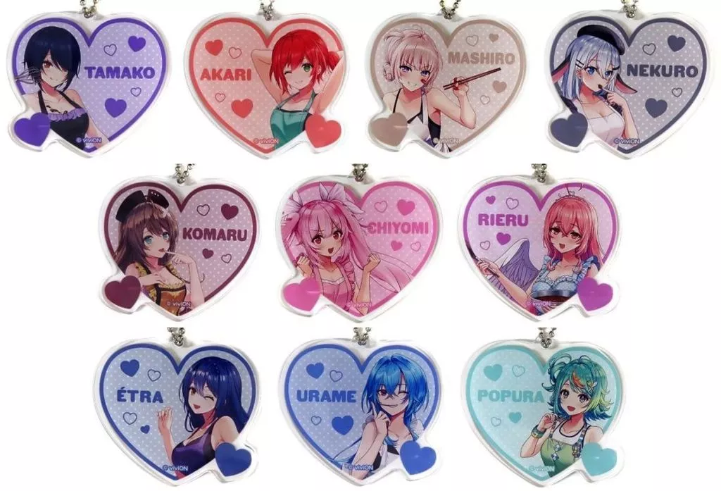 Product Explanation ■ This product is a 10-type set of "Virtual YouTuber Aogiri High School x Don Quijote Heart Shaped Acrylic Key Holder".