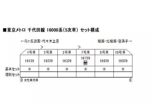 The basic set of 6 cars of Tokyo Metro Chiyoda Line 16000 series (5th train) is now available in N gauge scale.