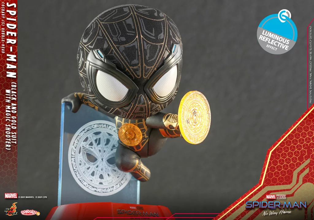 From the "Cos Baby" series based on the concept of "Cosplay Baby", the film 『 Spider-Man : No Way Home 』, in which Spider-Man wearing a black & gold suit and using magic shooters is made three dimensional as a pop and cute deformed figure with a total height of about 9 centimeters.