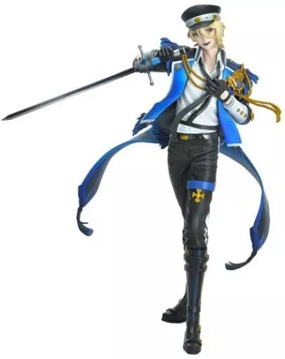 Each item is carefully finished with fine decorations such as metal fittings and fringe on the jacket, cap and boots as well as the left breast broach colored by "Guilty Blue" and the sword-shaped microphone in the hand.