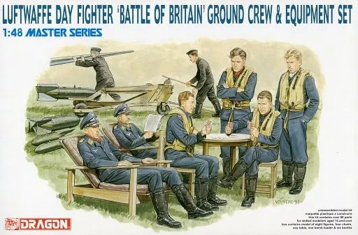 Model is a plastic model assembly kit that reproduces the German Air Force's pilot showing relaxed appearance before sorting or after returning, maintenance troops performing aircraft maintenance work, and various equipment.