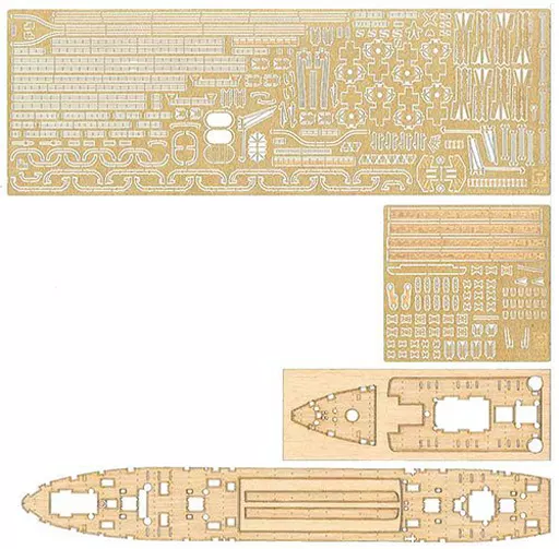 Parts Content : Boat Davit, ラッタル, Funnel Cap, Handrail, Derrick Base, Crane, 12 cm Cannon Shield, Ship Side External Electrical Circuit, etc.