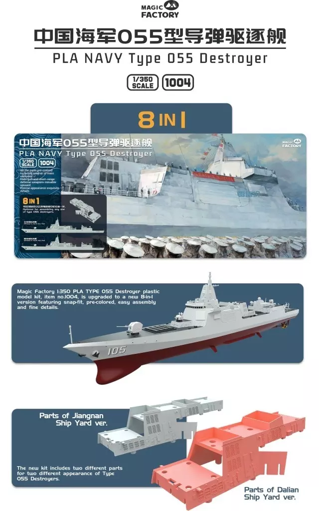 Product Explanation ■ The Chinese People's Liberation Army Navy 055 type destroyer (8-in-1) is now available in a 1/350 scale kit.