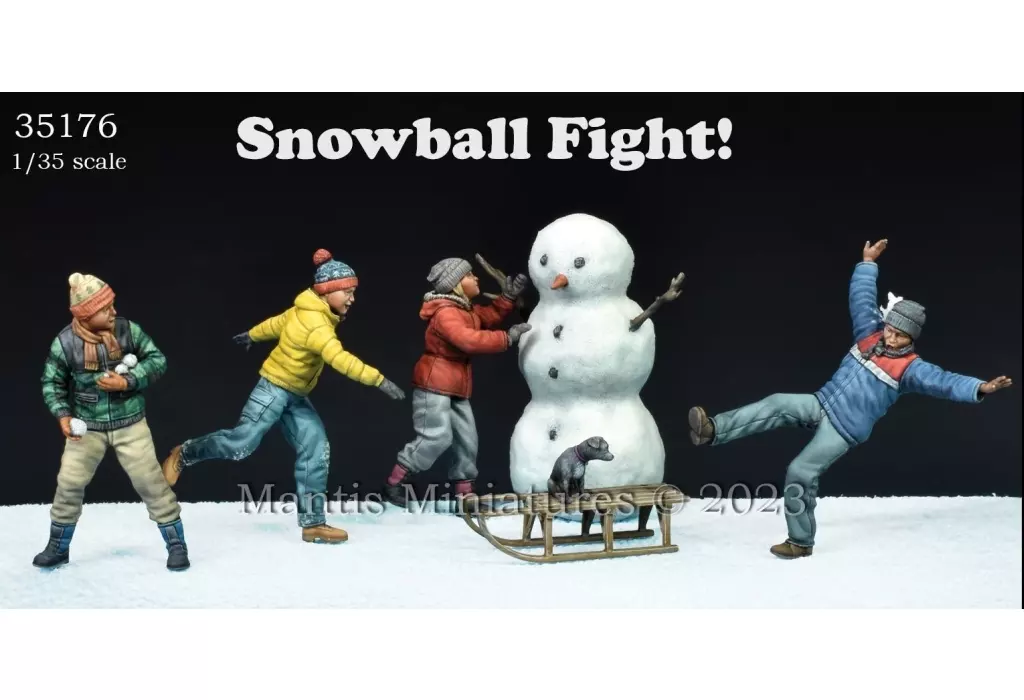 [Man35174] 1/35 Children throwing snowballs (2 bodies), [Man35175] 1/35 Children skiing on snow (2 bodies). [MAC38] 1/35 Snowmen / puppy / sledding set comes as a set. It is a little cheaper than buying each set separately.