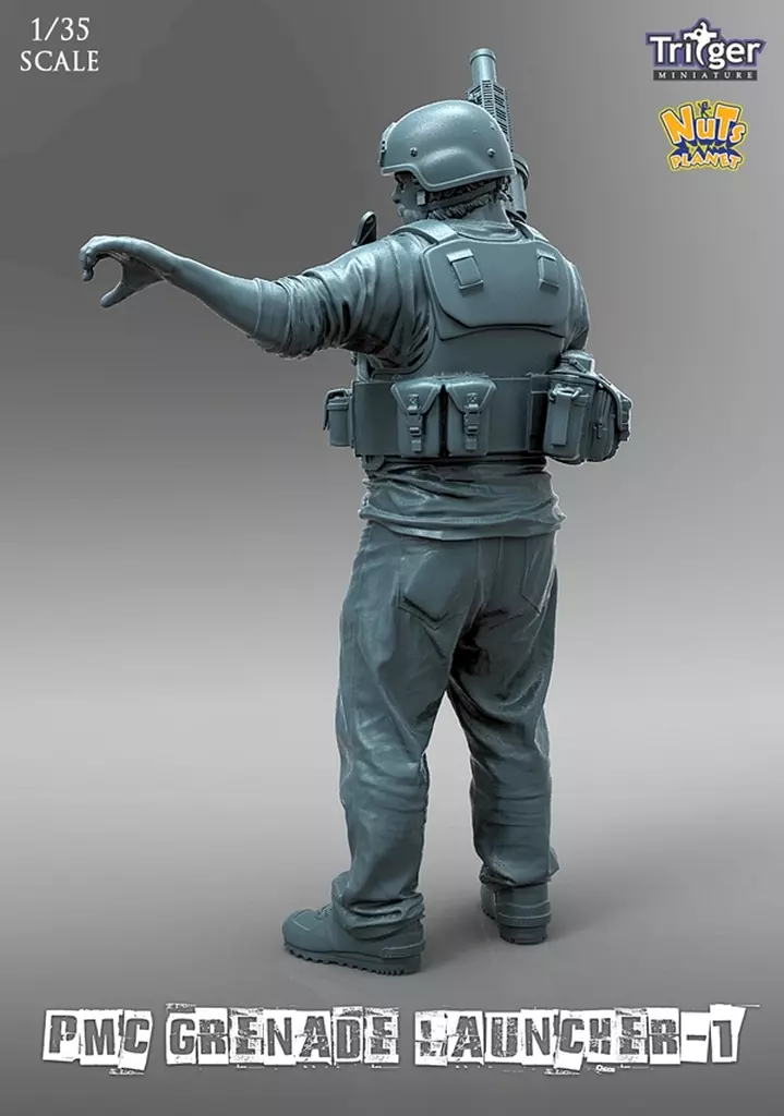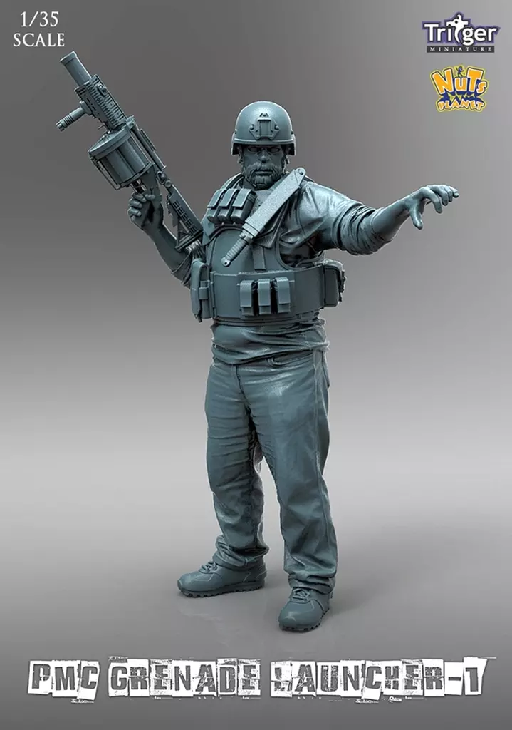 It is modeled after a PMC soldier who holds a rotary magazine grenade launcher in the right hand and sends a hand sign with the left hand.