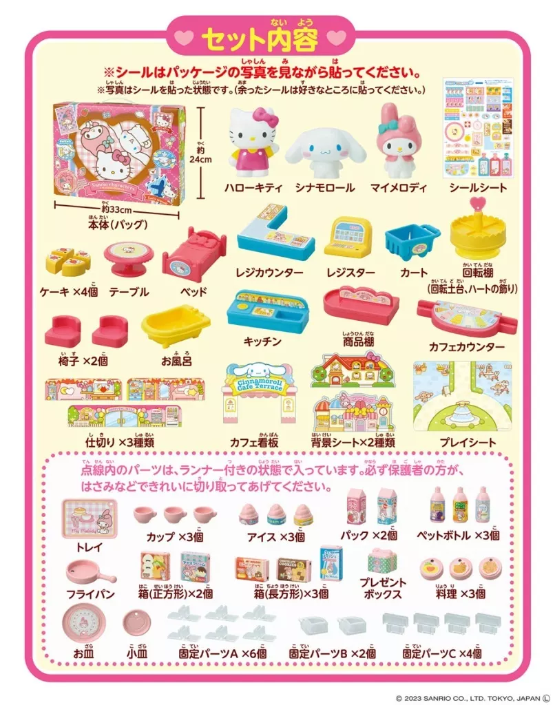 Product Description ■ Cinnamoroll, My Melody, and Hello Kitty, this is a set where you can enjoy your home, cafe, and show play!