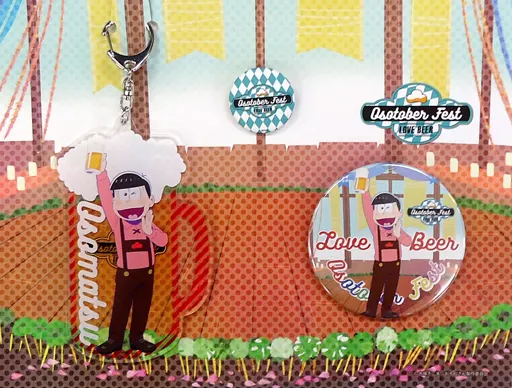 You will want to drink beer? 3-piece set consisting of an acrylic key holder with a design, a large Sugimatsu metal badge for each Character, and a mini metal badge with the "Osotober Fest" logo.