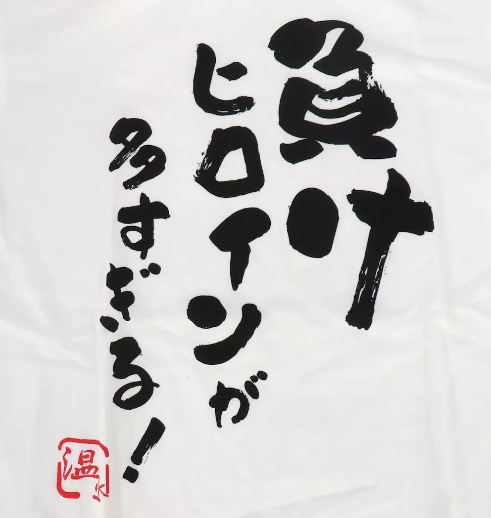 This is an original T-shirt with the title of the work designed in the style of writing letters!