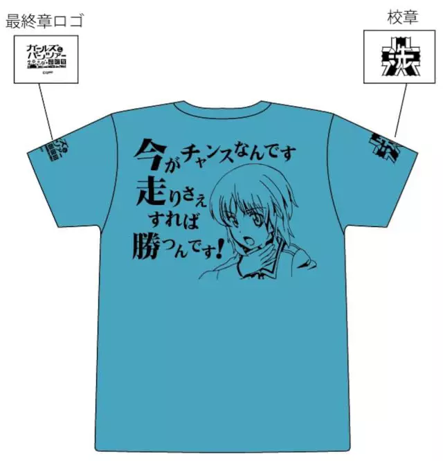 The back is designed with an impressive line of Nishizumi Miho. On the sleeves, there is the school emblem of Oarai Girls' School. On the other side, there is the logo of GIRLS & PANZER 『 Final Chapter 』.