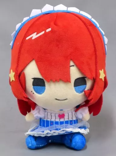 This is a quintet Plush toy dressed in a blue maid costume with a drawing illustration.