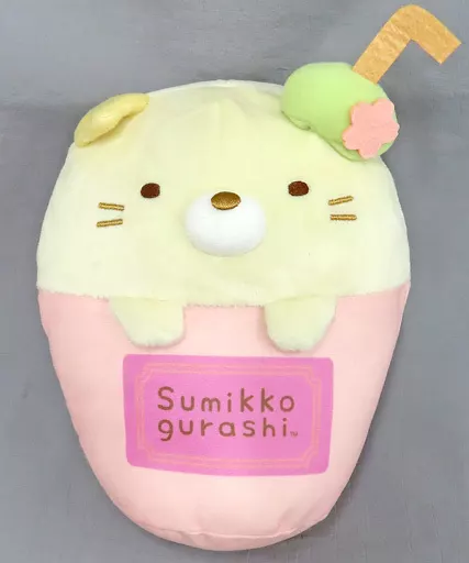With a drink cup with a stylish logo, this is a lovely Plush toy that can be used as a desktop interior!