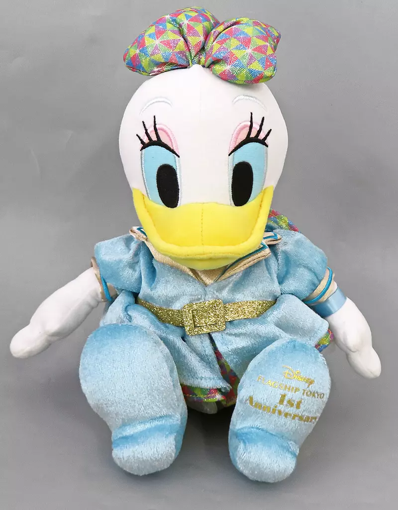 As for 1 year anniversary, it is connected with the hands of another Character Duct Plush toy (sold separately).