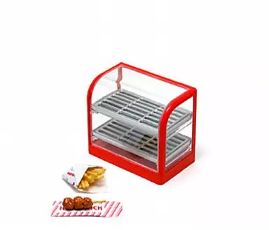 Hot warmer body, warmer trays x 2, warmer nets x 2, French fries, fried chicken skewer, French fries bag, fried chicken skewer bag, seal