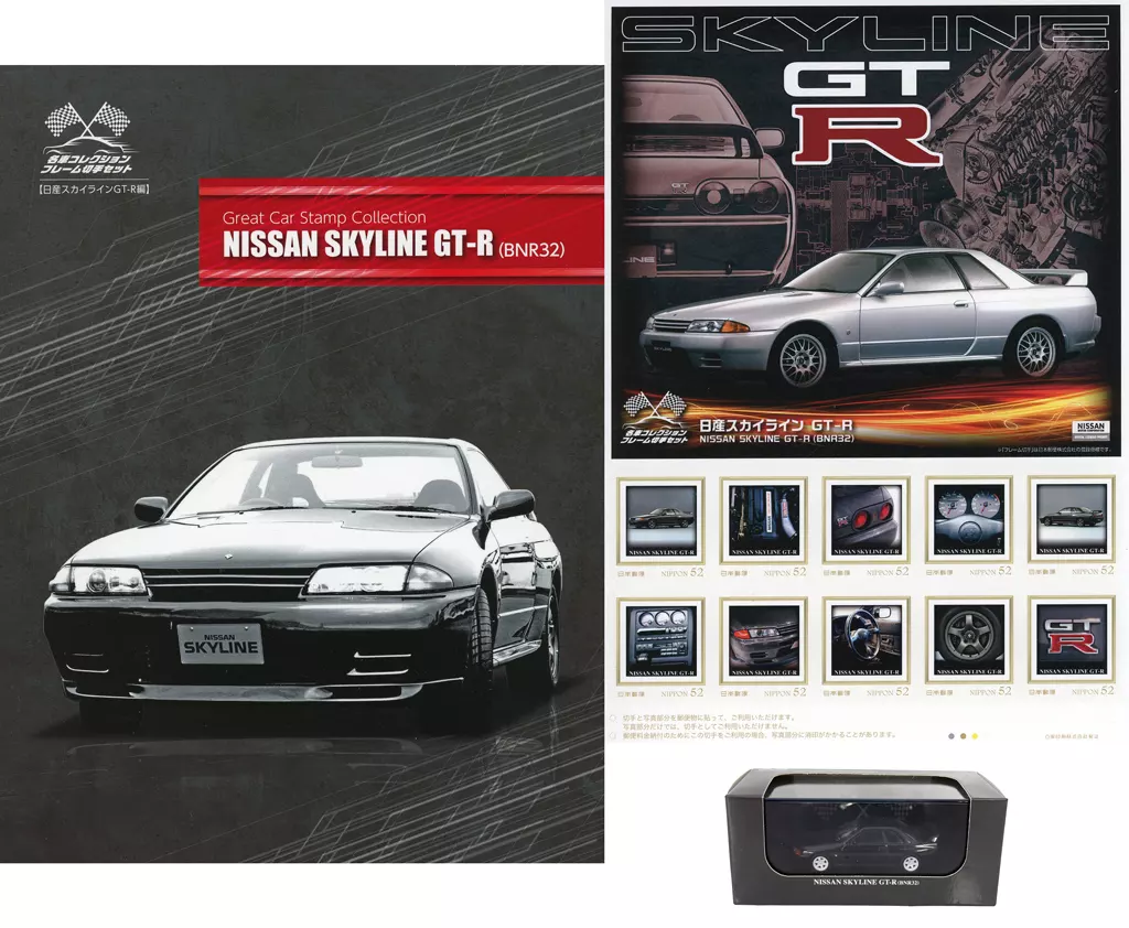 1/64 NISSAN SKYLINE GT-R BNRR32 (black) is included in the product explanation ■「 famous car collection frame postage stamp set "NISSAN SKYLINE GT-R edition".