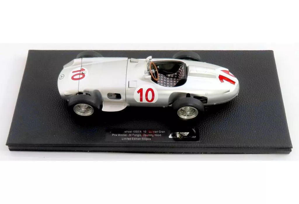 Product Description ■ W196 open wheel 1955 Belgian Gran Prix Winner #10 (silver) is now available in a 1/18 scale display model.