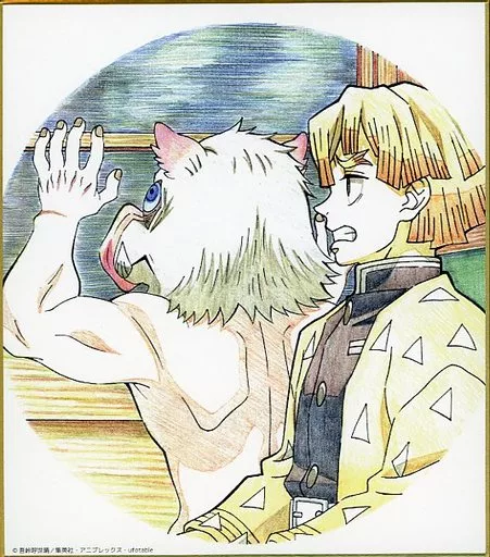 Japanese title: 紙製品 我妻善逸&嘴平伊之助 「鬼滅の刃 全集中展 -無限列車編・遊郭編- 作画スタッフ全集中複製ミニ色紙F」