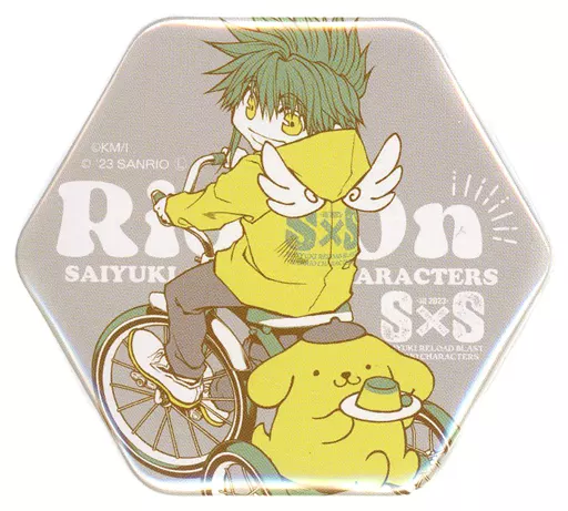 Japanese title: バッジ・ピンズ ちび悟空×ポムポムプリン 「最遊記×サンリオキャラクターズ POP UP SHOP トレーディング六角形缶バッジB」