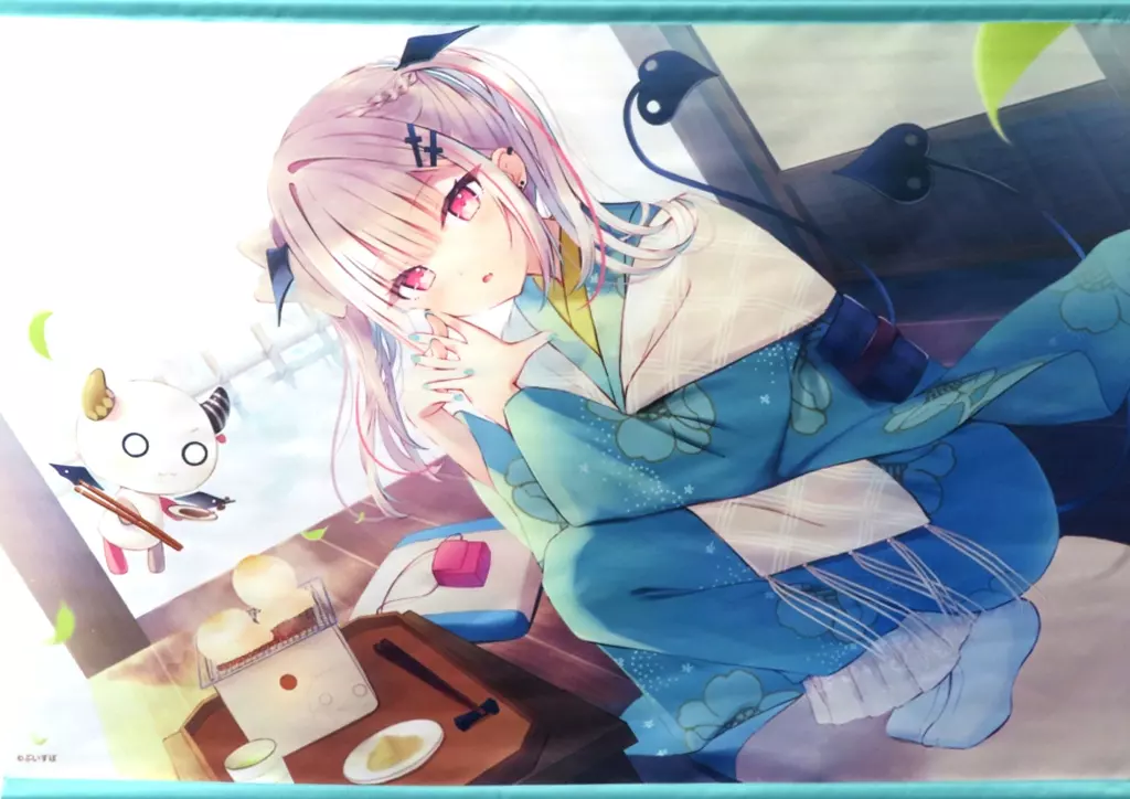 Please enjoy the cute illustration of "Kusumi Senna" and "Reo" baked rice cake at the veranda with a Tapestry.