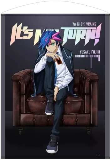 ・ The strongest duels gather here. Quietly standing Fujiki 遊作 with a card in one hand on a chair.