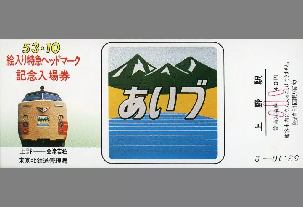 Expired / Unused Aizu October 1978 Limited Express Head Mark Commemorative Entrance Ticket with a picture for 40 yen (Ueno Station)