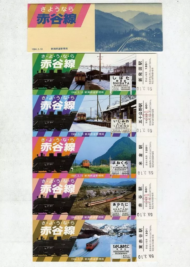Specifications : 120 yen (3 tickets / Yonegura, Higashiakatani and Shibata station), 60 yen (2 tickets / Akatani and Ijimino)