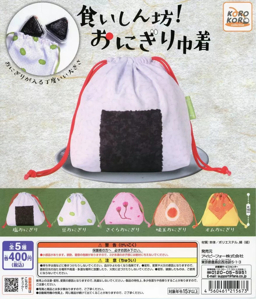 This product is "Gacha Mount" from "Korokuro Collection Kuishinbo! Onigiri drawstring bag".