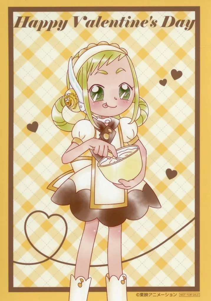 Product Explanation ■ 『 webpon× KUJI Mate Magical DoReMi 』 10th Purchase benefits "Bromide". Now available is an illustration of MAHOdo's patissier clothes arranged in a Valentine style.