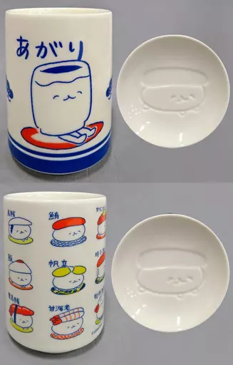 Product Explanation ■ This is a 2-type set of "Oshisadayo Japanese tea cup & Soy Sauce Plate Set".