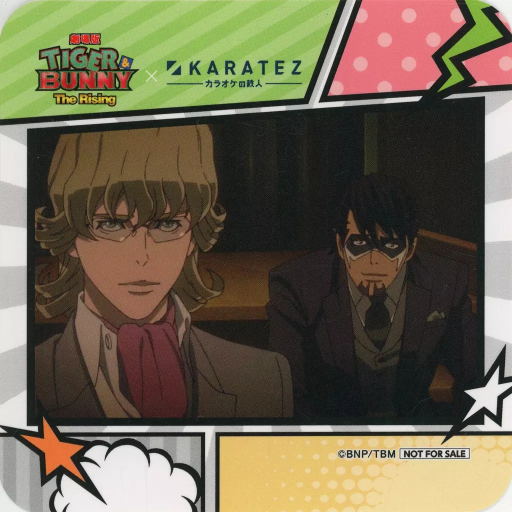 This is 『 original coaster ABOX 』 as a special bonus for ordering a collaborated drink of "Theater version TIGER & BUNNY The Rising× Karaoke no Tetsujin".