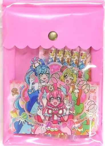 Product Description ■ A stationery set with a pochette shaped case, 5 color pens, memo, and stickers ♪