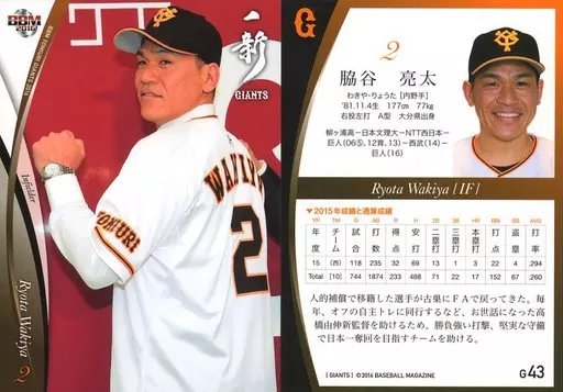 Japanese title: BBM/レギュラーカード/BBM2016 読売ジャイアンツ G43[レギュラーカード]:脇谷亮太