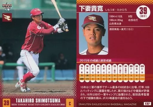 Japanese title: BBM/レギュラーカード/BBM2016 東北楽天ゴールデンイーグルス E37[レギュラーカード]:下妻貴寛
