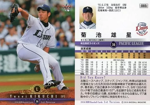 BBM / Regular Card / Saitama Seibu Lions / BBM2016 Baseball Card 1 st Version 085 [Regular Card] : Yūsei Kikuchi