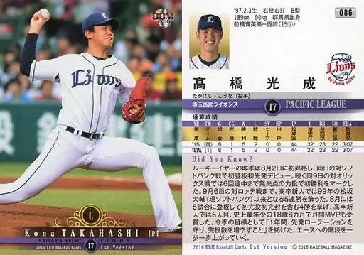 BBM / Regular Card / Saitama Seibu Lions / BBM2016 Baseball Card 1 st Version 086 [Regular Card] : Kona Takahashi