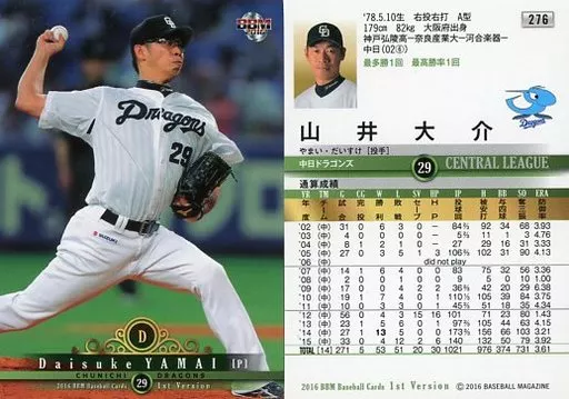 BBM / Regular Card / Chunichi Dragons / BBM2016 Baseball Card 1 st Version 276 [Regular Card] : Daisuke Yamai