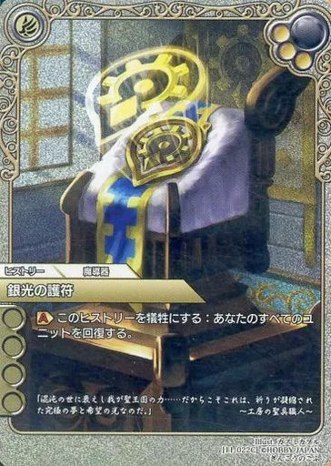 Japanese title: ラストクロニクル/C/ヒストリー/白/ブースターパック陽光編I 11-022C[C]:(プレミアム)銀光の護符