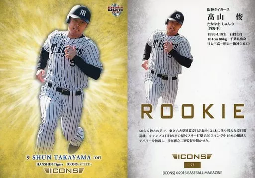 Japanese title: BBM/レギュラーカード/阪神タイガース/BBM2016 ICONS -SPEED- 27[レギュラーカード]:高山俊