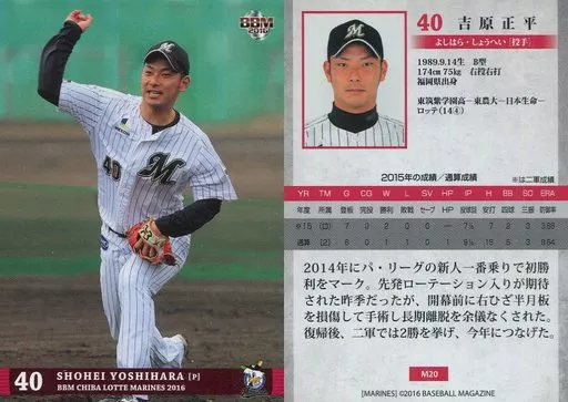 Japanese title: BBM/レギュラーカード/千葉ロッテマリーンズ/BBM2016 千葉ロッテマリーンズ M20[レギュラーカード]:吉原正平