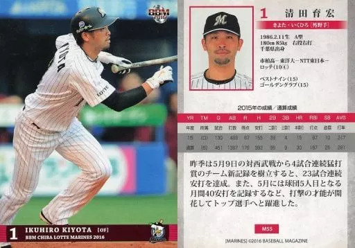 BBM / Regular Card / Chiba Lotte Marines / BBM2016 Chiba Lotte Marines M55 [Regular Card] : Ikuhiro Kiyota