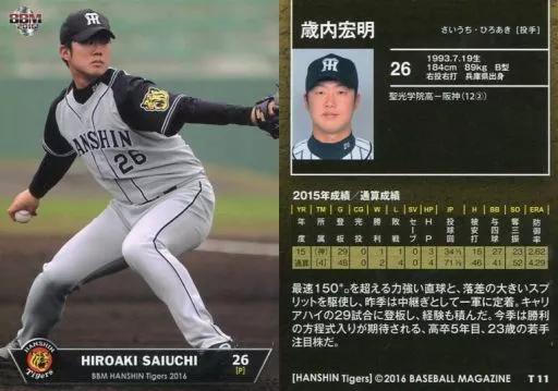 Japanese title: BBM/レギュラーカード/阪神タイガース/BBM2016 阪神タイガース T11[レギュラーカード]:歳内宏明