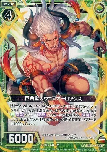 Japanese title: ゼクス/UC/ゼクス/緑/第16弾『真神降臨編 神域との邂逅』 B16-088[UC]:巨角獣人ウェアオーロックス