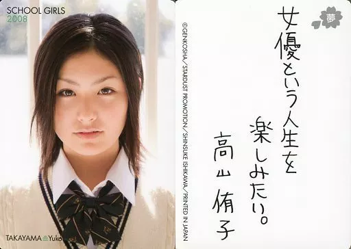 Collection Card (Female) / Photo Collection 「 Graduation Album -SCHOOL GIRLS 2006-2008 - 」 Enclosed Special Trading Card Yuko Takayama / SCHOOL GIRLS 2008 / With a message printed on the back side / Photo collection 「 Yearbook -SCHOOL GIRLS 2006-2008 - 」 enclosed special trading card