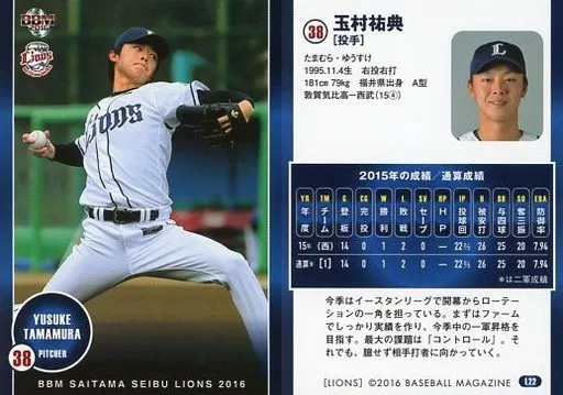 Japanese title: BBM/レギュラーカード/BBM2016 埼玉西武ライオンズ L22[レギュラーカード]:玉村祐典