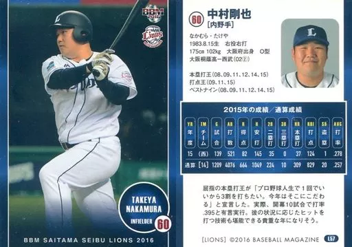 Japanese title: BBM/レギュラーカード/BBM2016 埼玉西武ライオンズ L57[レギュラーカード]:中村剛也